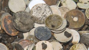 ボランティアのダイバーが早朝から水中に入り、手作業で水底にたまった硬貨を引きあげた。水温は年間を通じて13度ほどで、身を切るように冷たい。ダイバーらは約20分で交代しながら回収を続けた。