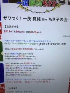 〇2019年1月30日(水) テレビ朝日「ザワつく一茂良純時々ちさ子の会」