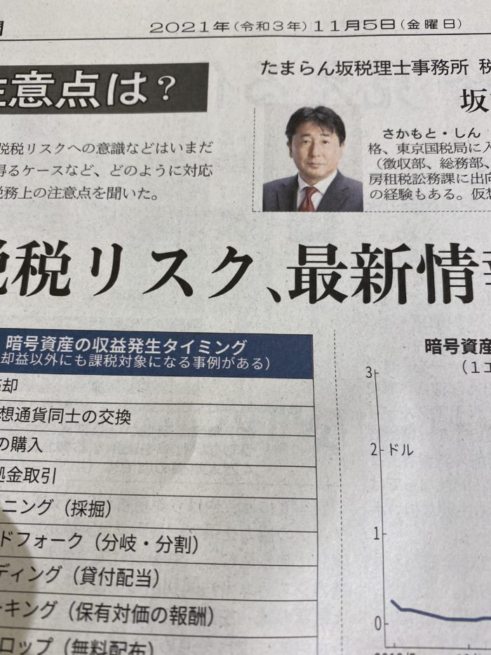 「仮想通貨と税、注意点は?」 インタビュー記事(詳細は、以下に記載)