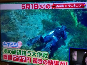 昨日は、半年ぶりの忍野八海水底コイン(硬貨)回収潜水ボランティアを実施しました。水底にたくさんあったコイン(硬貨)ですが、ボランティアに参加頂いた6名のダイバーの皆さんのおかげで、本当に綺麗になりました。回収したコイン(硬貨)は想像を超える以上の数(金額)になりました。今回の様子は、某放送局に取材をして頂いたので、近日中に放映予定です。