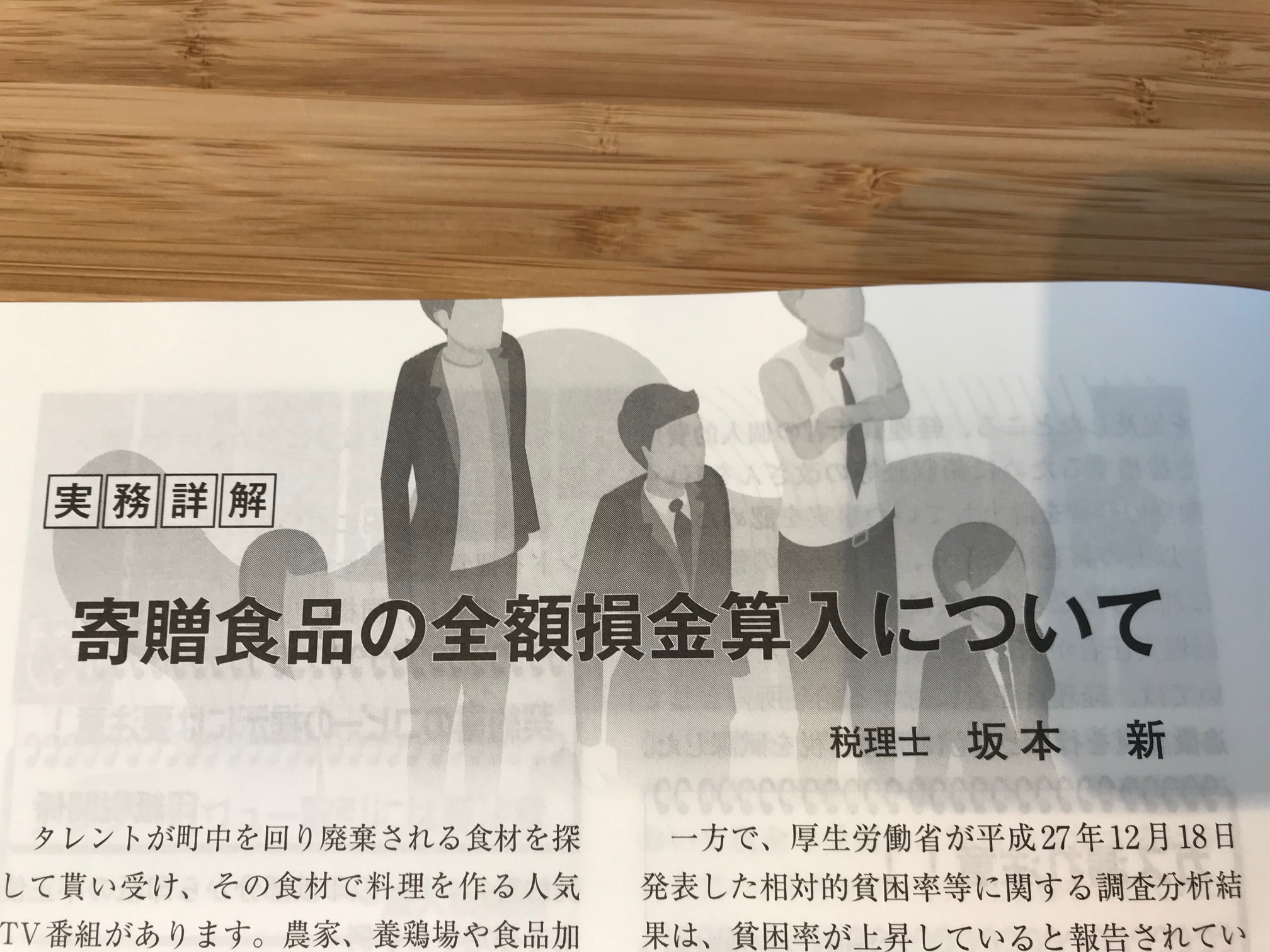 確定申告も終盤です。さて3月11日に発売になりました「税と経営」(出版元:株式会社税経)に寄贈食品の全額損金算入についての記事を掲載させていただきました。この記事は、今後、多くなるであろう貧困世帯の子供を支援する「子供食堂」を運営するフードバンクに企業が食品を寄贈しやすくする支援税制の説明です。多くの人に知っていただき、この支援税制をご活用いただきたいと思います。来週3月19日火曜日にこの記事と同じ内容の講演会を開催して、私が登壇しますので、ぜひお越しください。