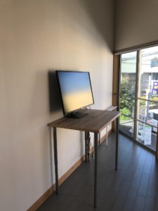 私の事務所では、基本的に仕事は立ってします。デスクは、すべてスタンティングデスクにしています。このスタンティングデスクにする前は、立って仕事をしてもタイピングは遅くなるだろうし、事務効率が上がるとは思えないと考えていました。しかしどうでしょう。実際、スタンディングデスクを導入したところ、効率は良くなるし、メリハリはつくし、いいことばかり。 これに加えて、肩こり、腰痛も解消。 これにダイエット効果もあると書いたら書きすぎですか・・・。でも効果はすごいです。 写真は最近導入した42・5型のモニターとスタンディングデスクです。